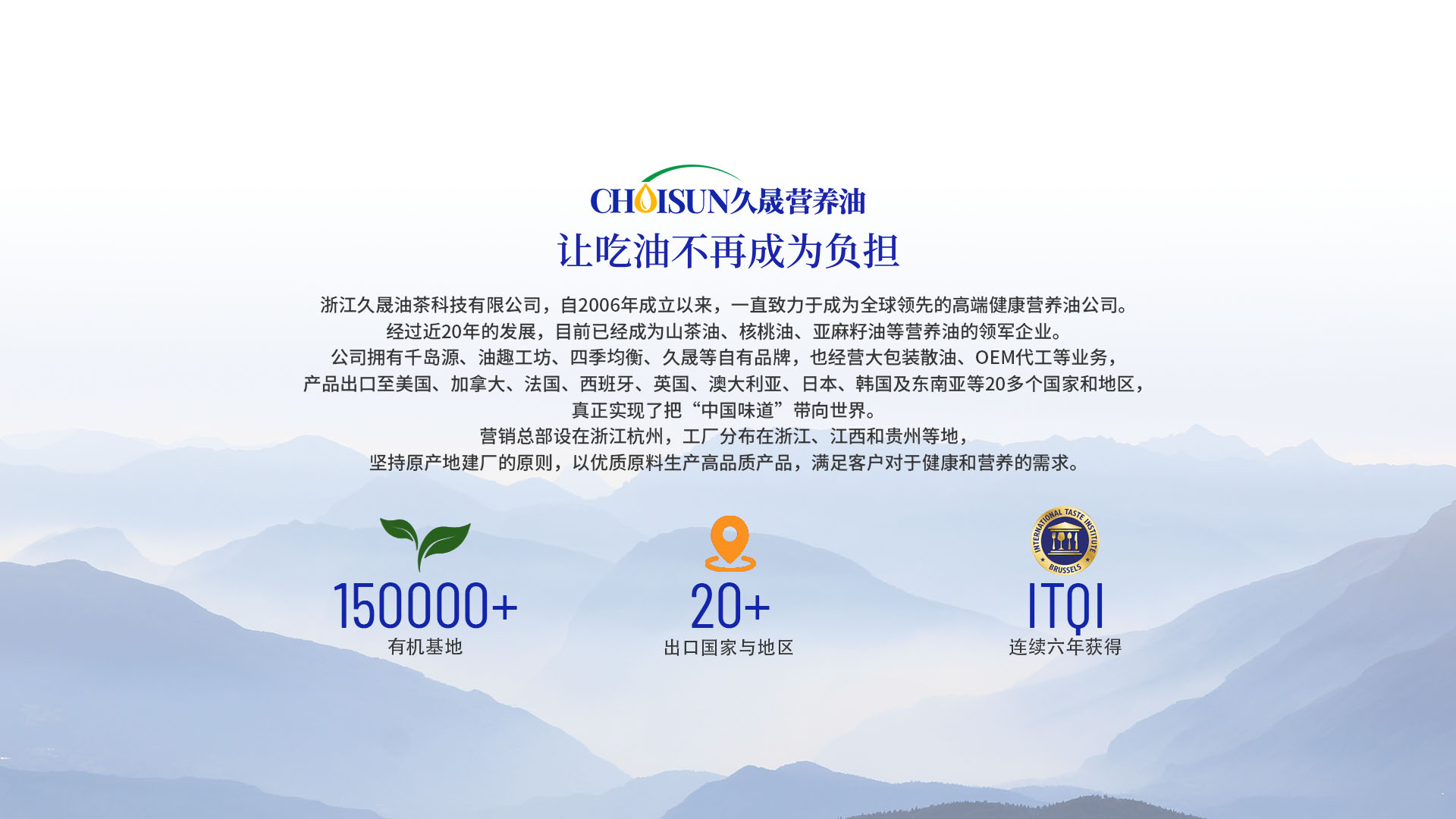 甄選高山老樹齡有機(jī)油茶籽冷榨而成,全程品質(zhì)控制,榮獲四國(guó)有機(jī)認(rèn)證,品質(zhì)更安心。